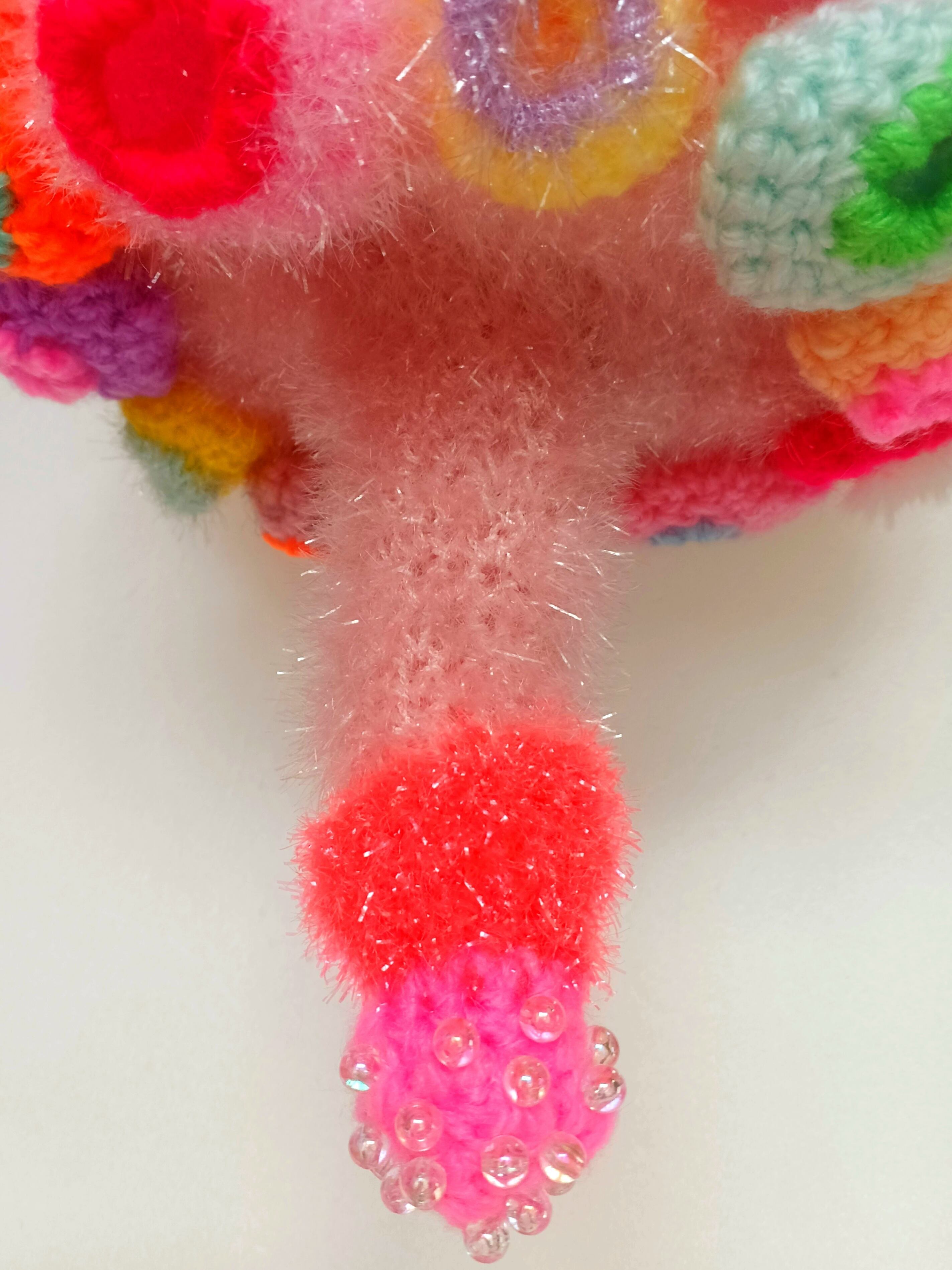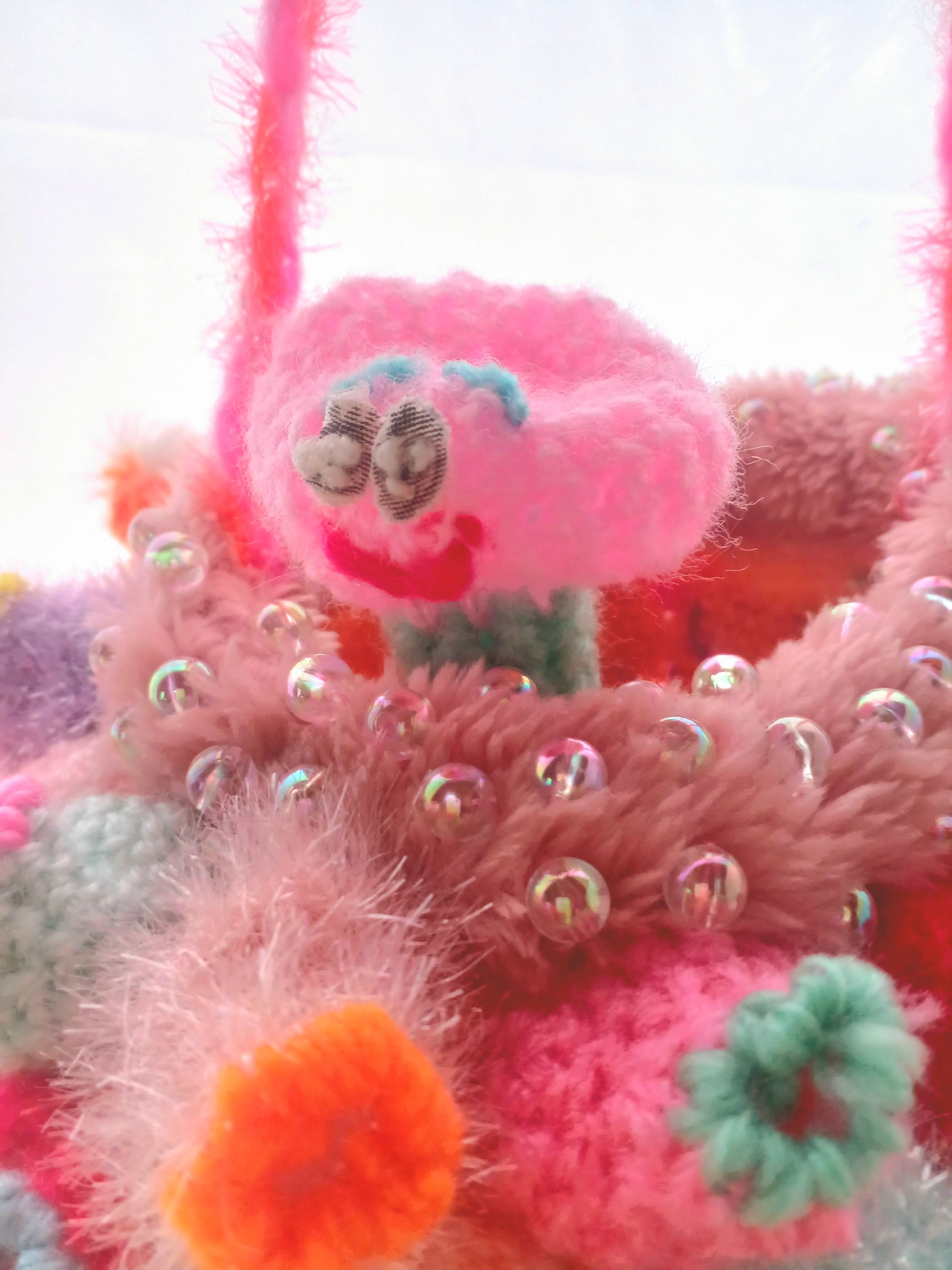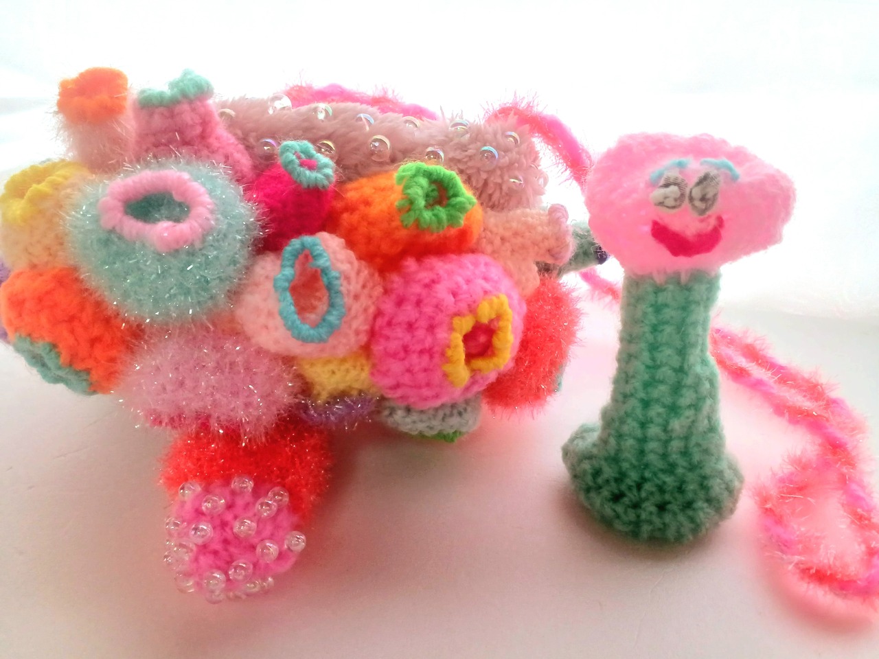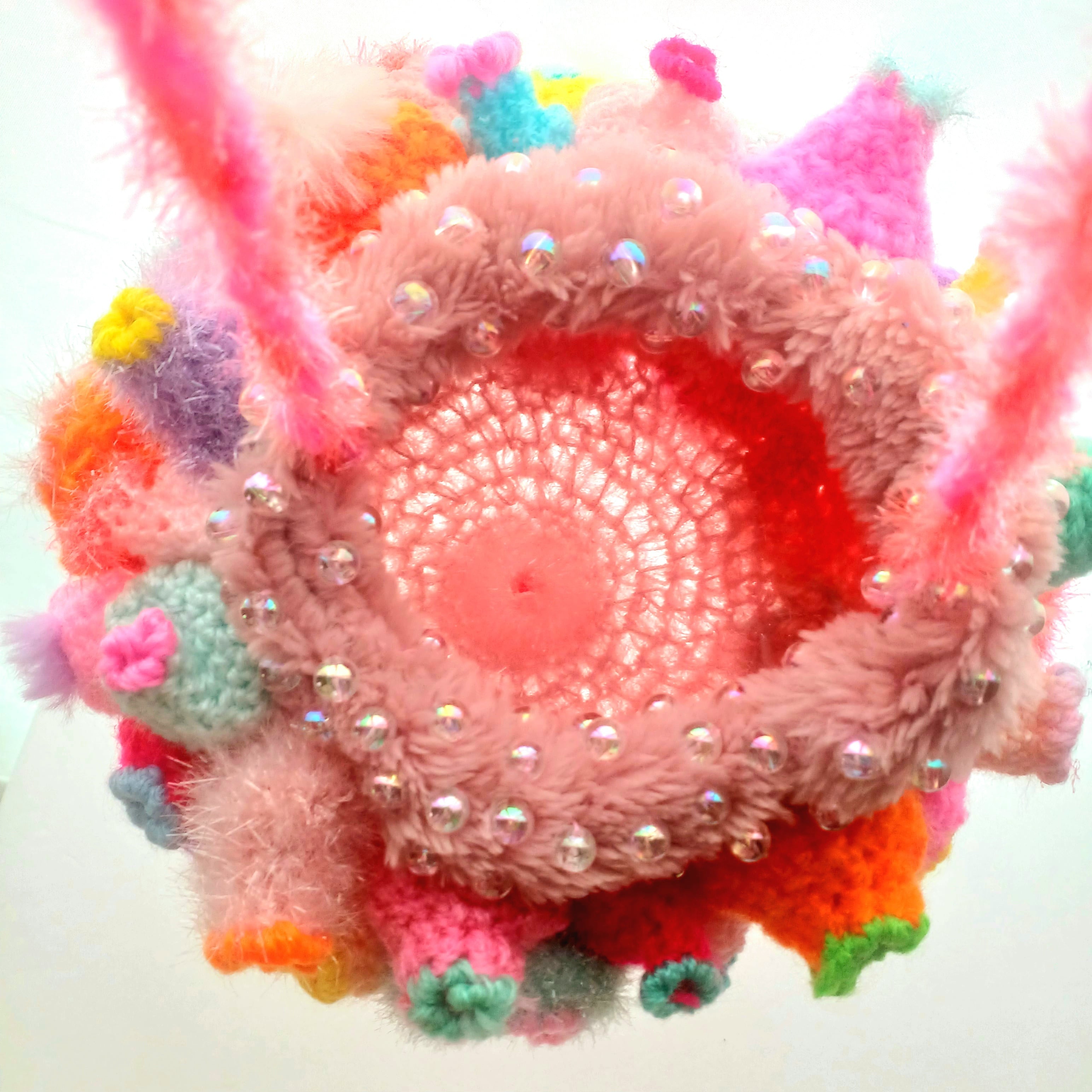 Acrylic yarn, glitter yarn, beads, spangle, clothes