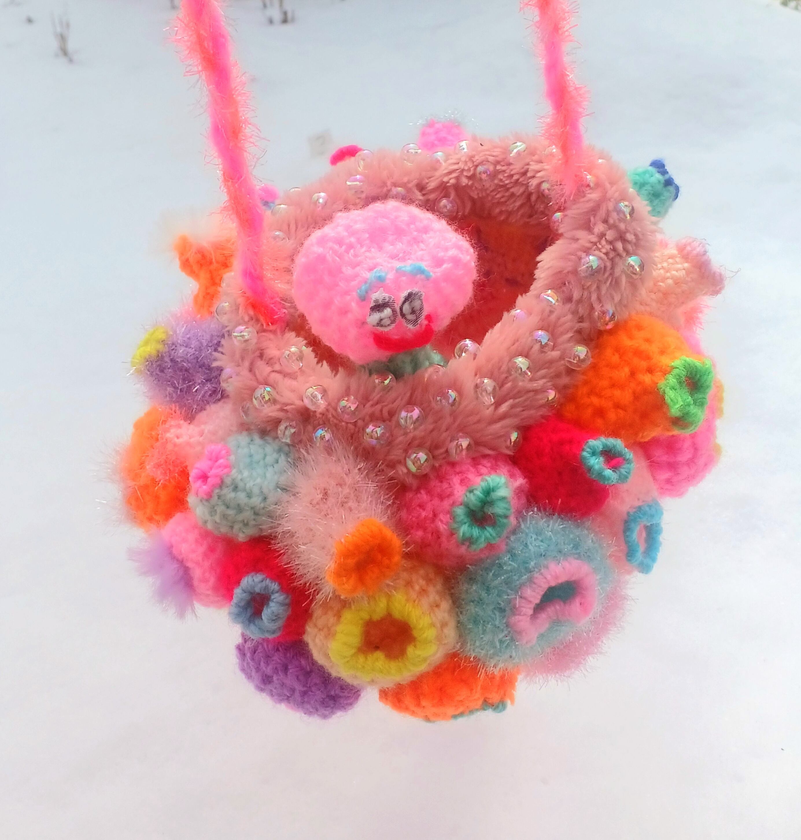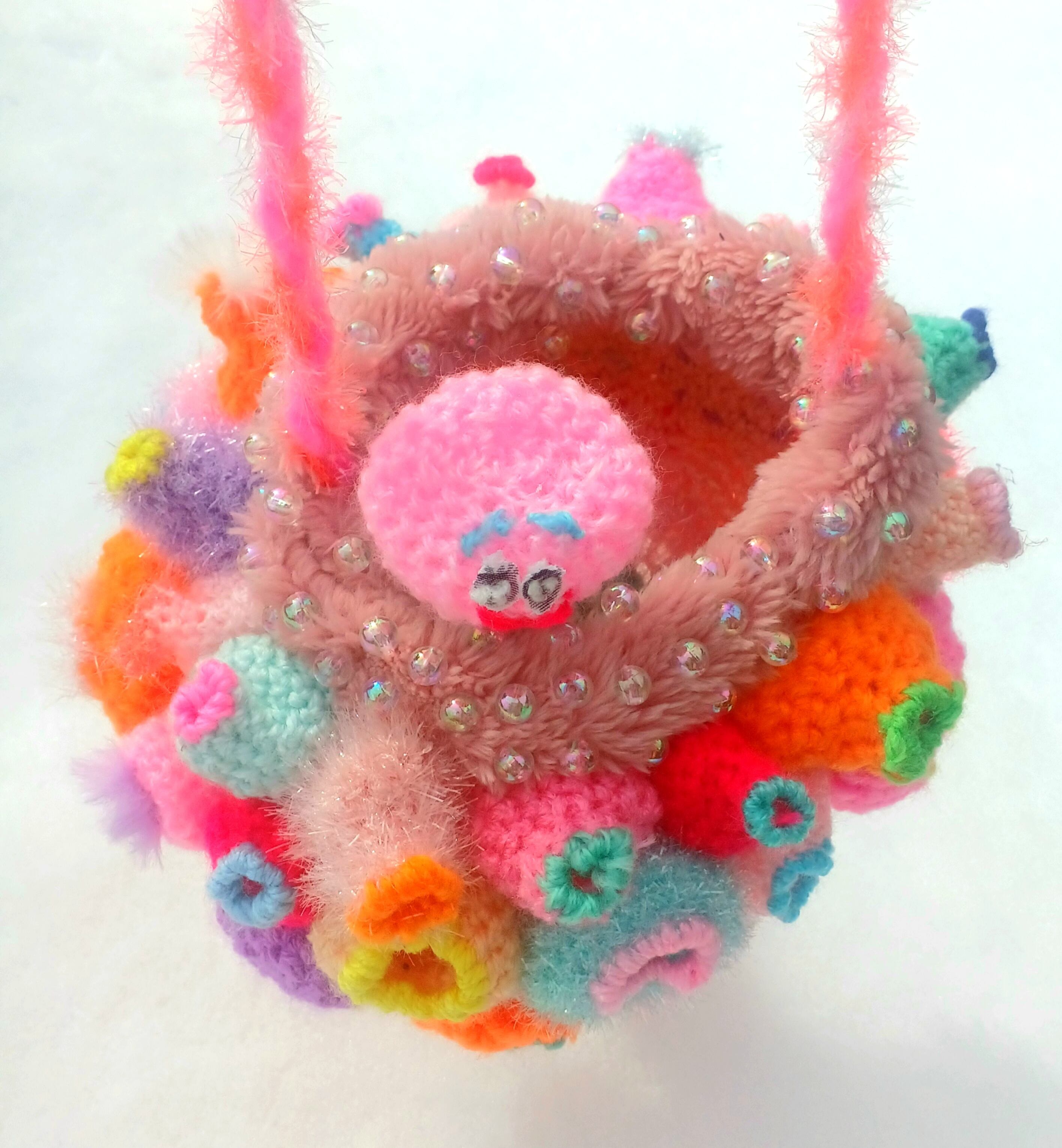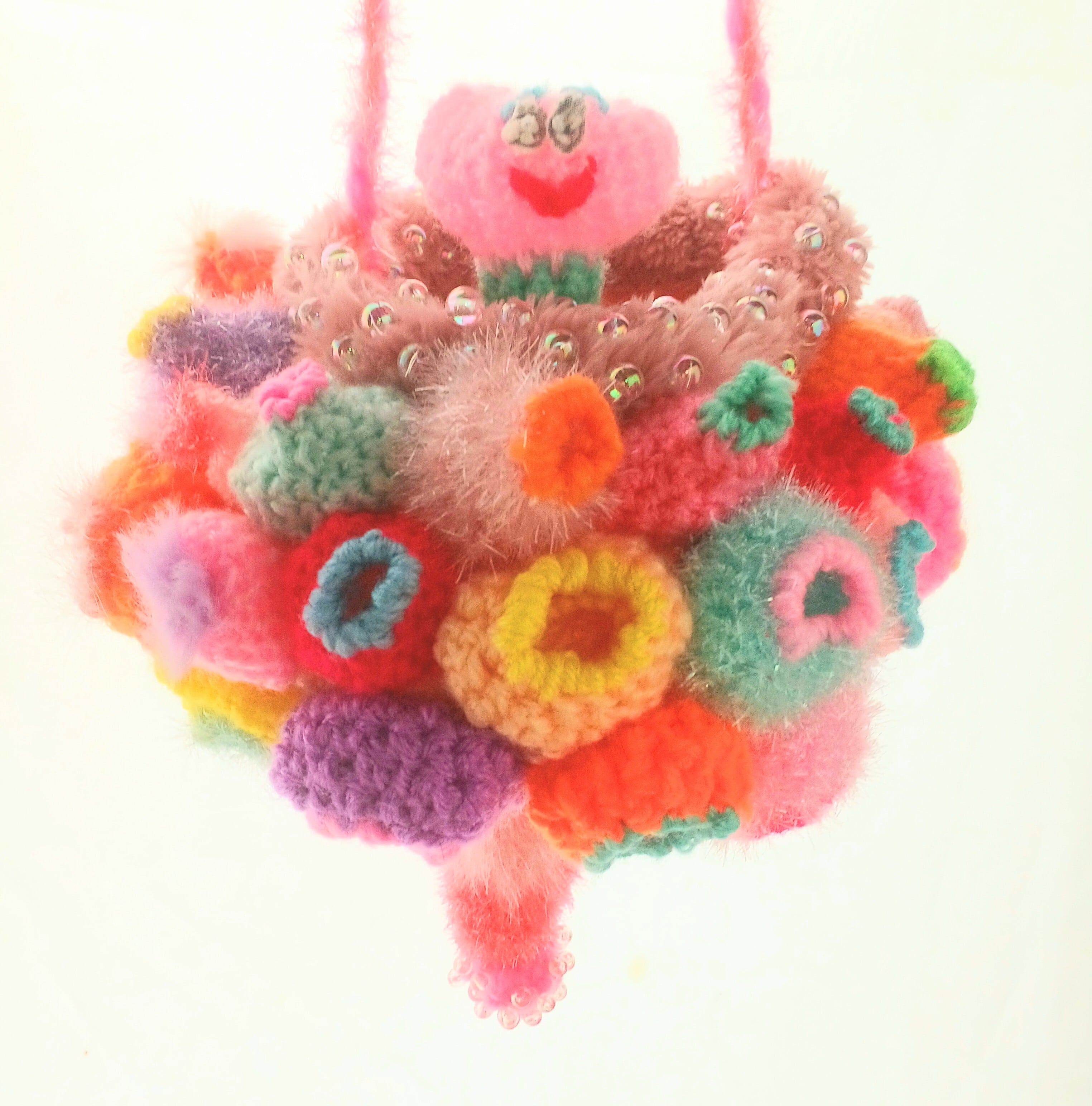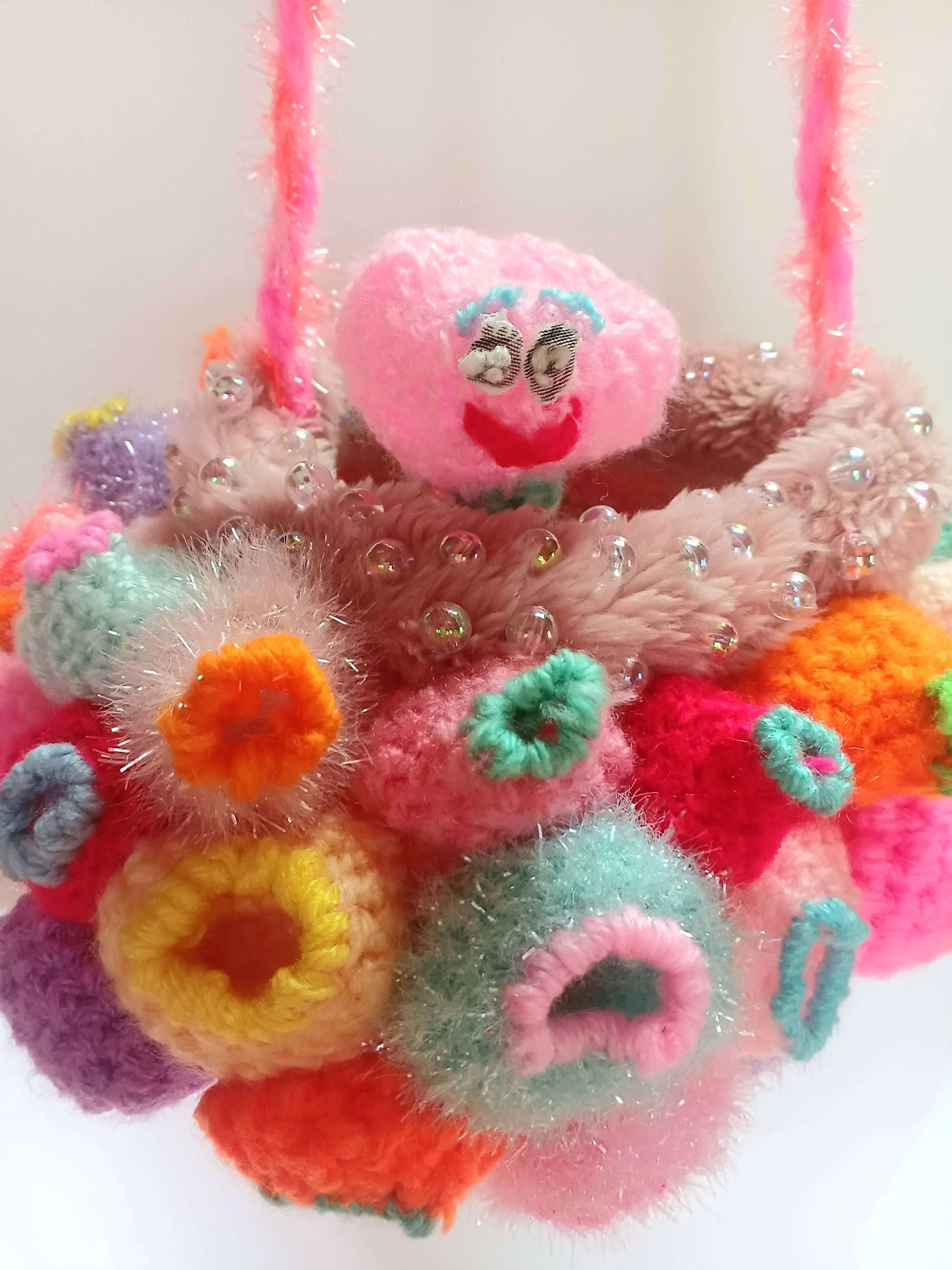 作品はショルダーbagと中に入っているおまけの人形です。吊りオブジェとしても、bagとしてもご使用できます。