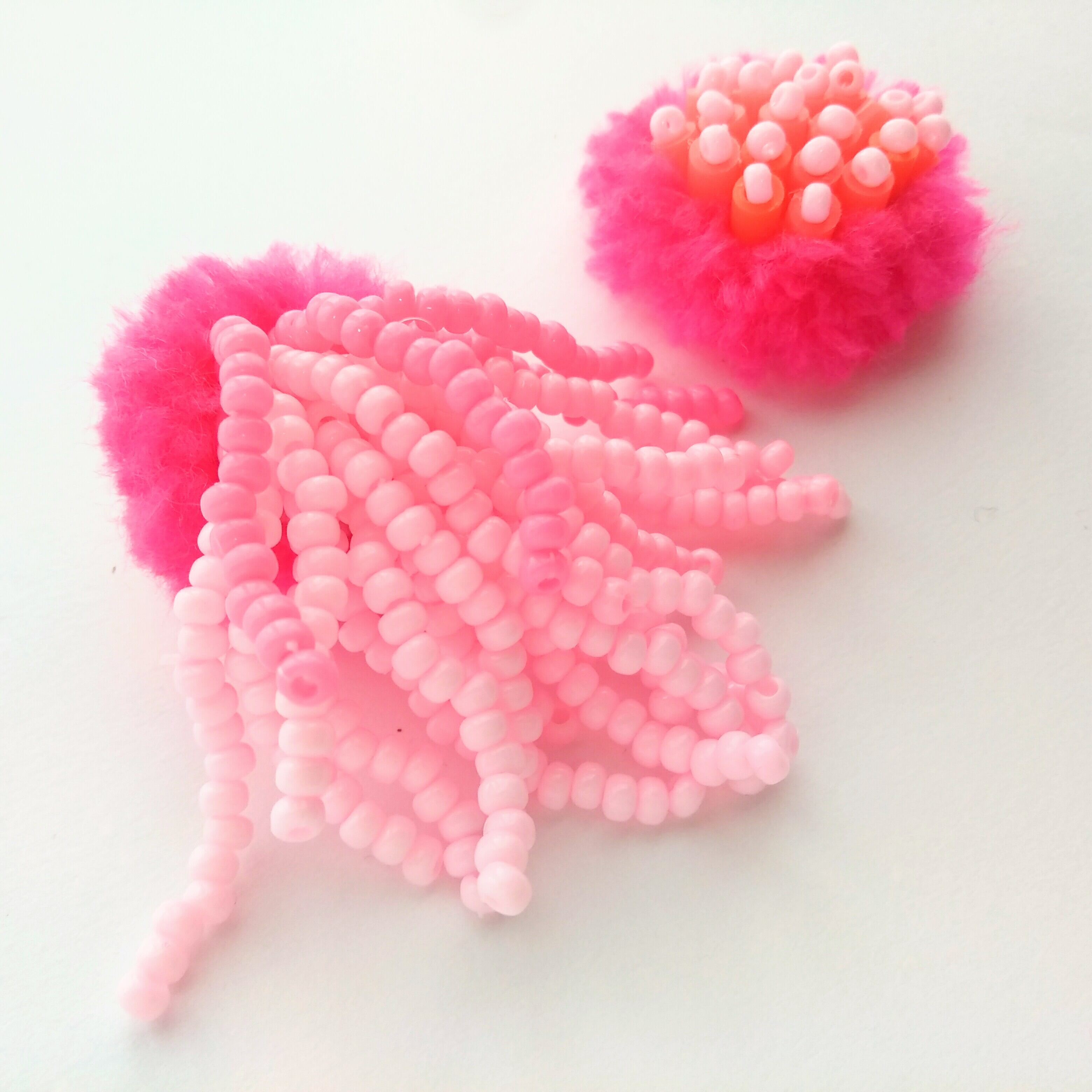 素料:ビーズ、スパンコール、毛糸、フェルト