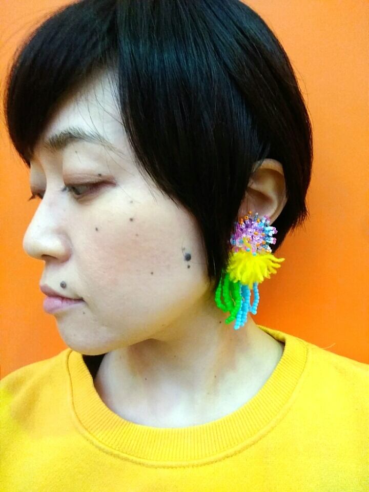素料:ビーズ、スパンコール、毛糸、フェルト