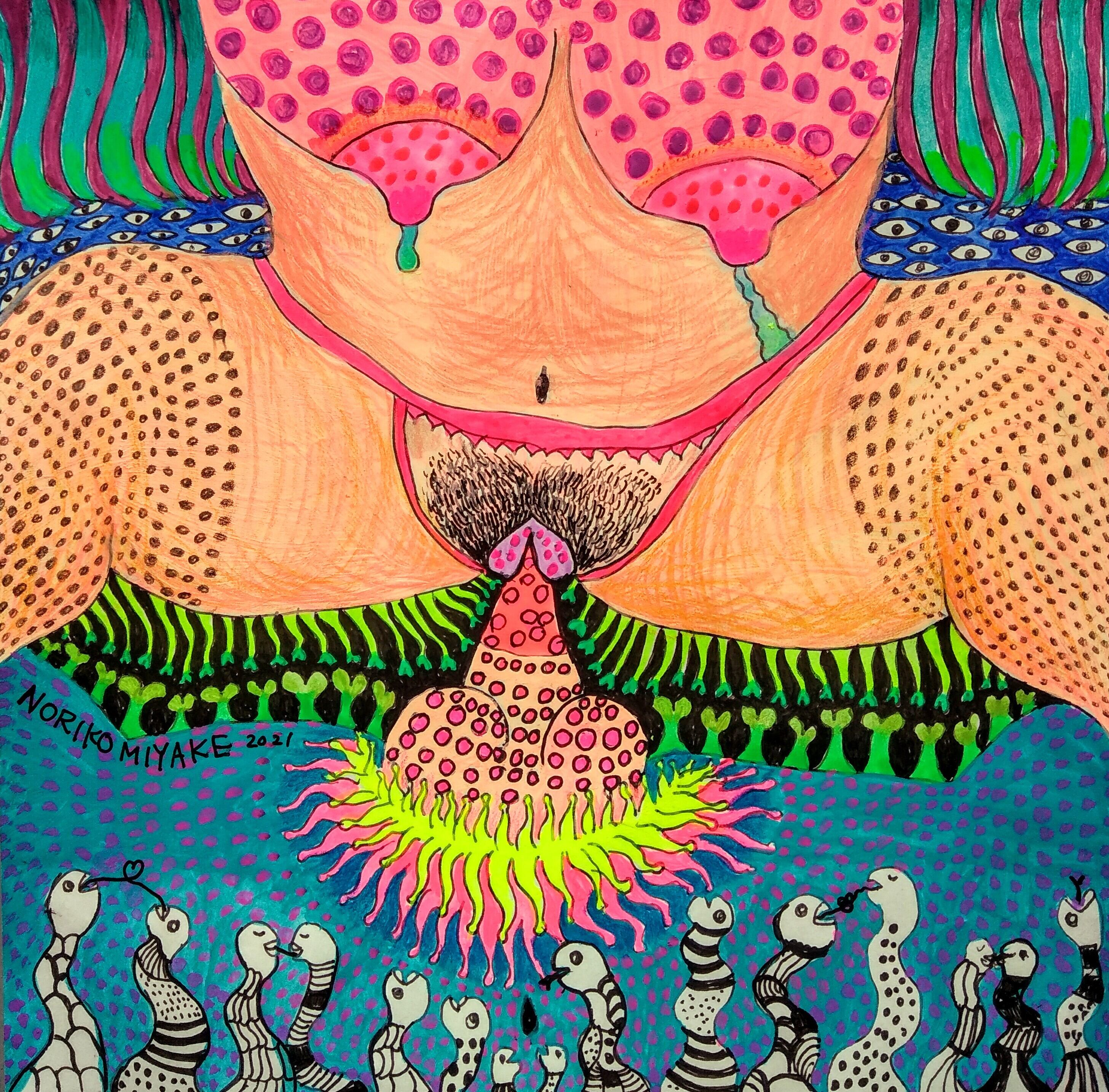 素材:アクリルガッシュ、色鉛筆、鉛筆、ボールペン、画用紙
