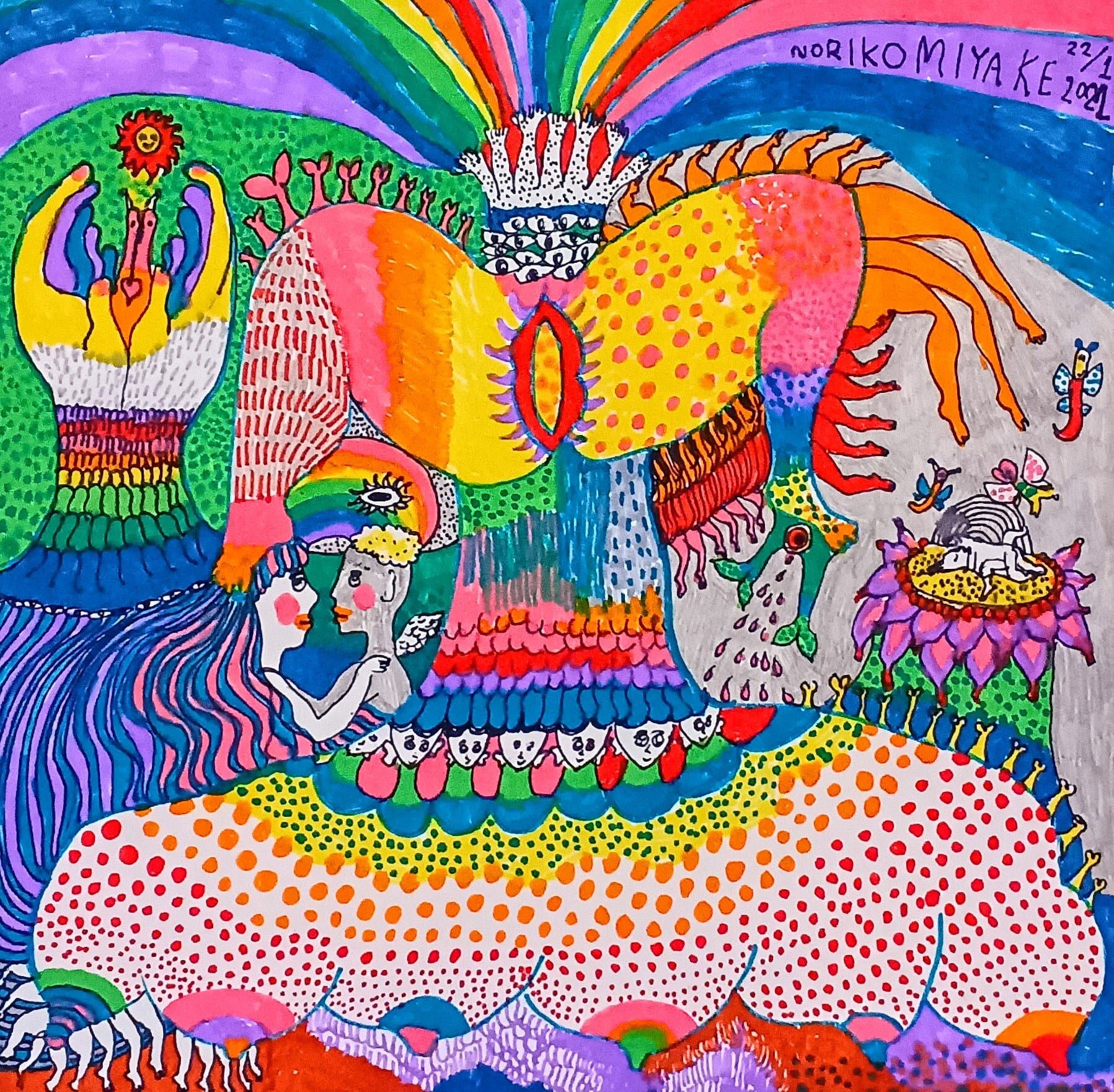 素材:アクリルガッシュ、色鉛筆、ボールペン、画用紙