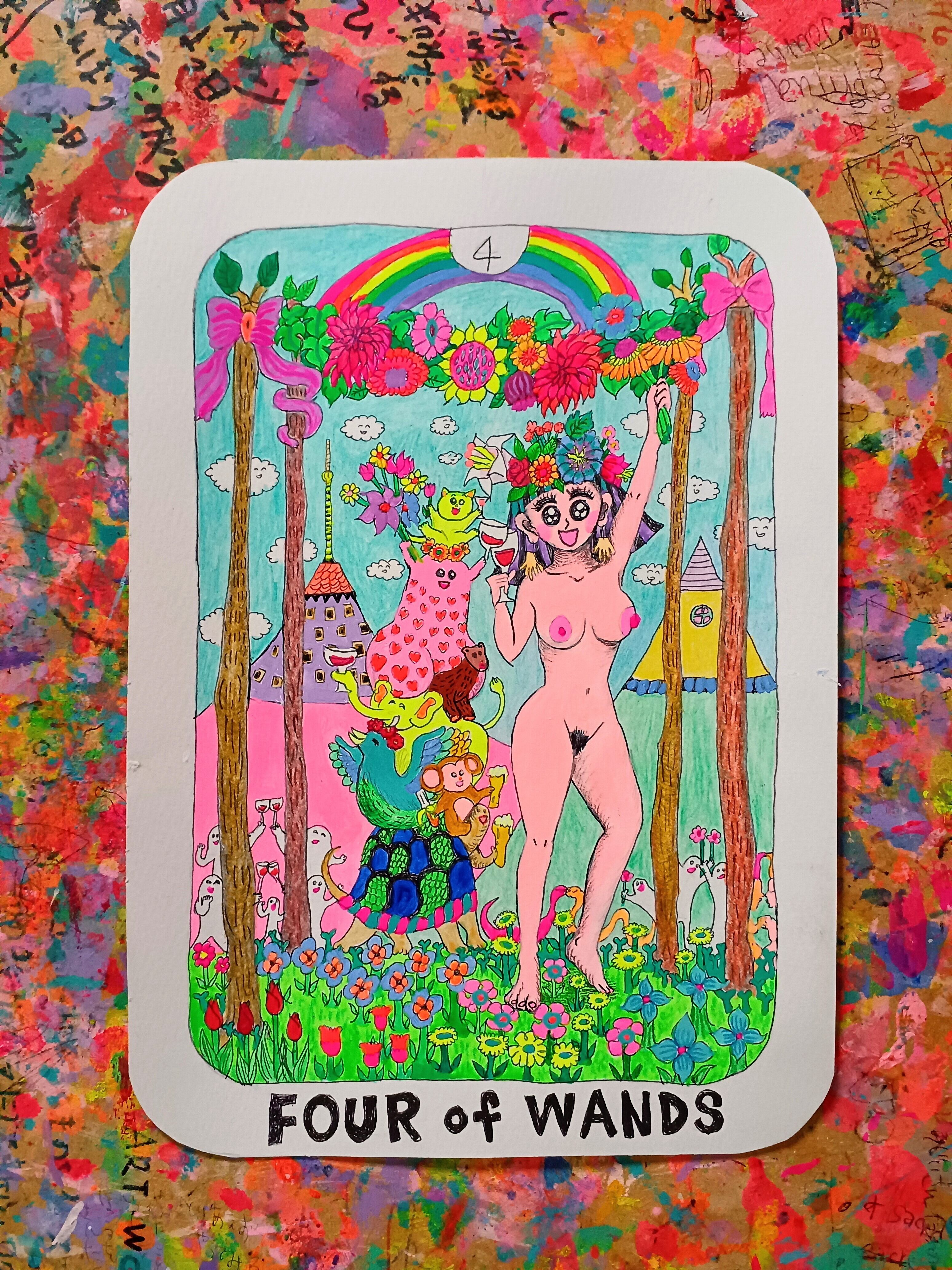 There is a signature on the surface of painting.The painting will be framed and then shipped.This is the original artwork for "FUCKING TAROT," an original tarot card created by NORIKO MIYAKE.