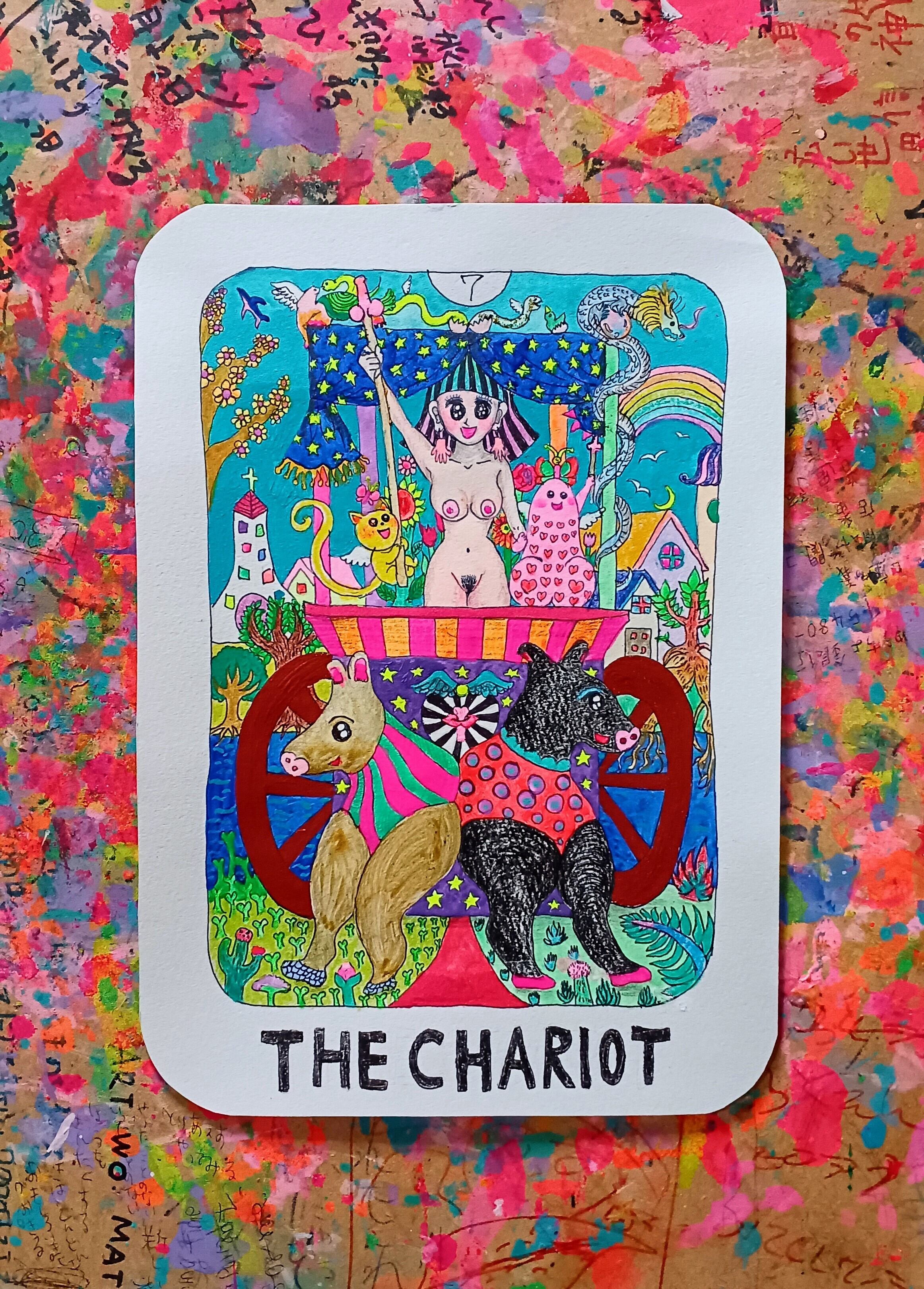 There is a signature on the surface of painting.The painting will be framed and then shipped.This is the original artwork for "FUCKING TAROT," an original tarot card created by NORIKO MIYAKE.