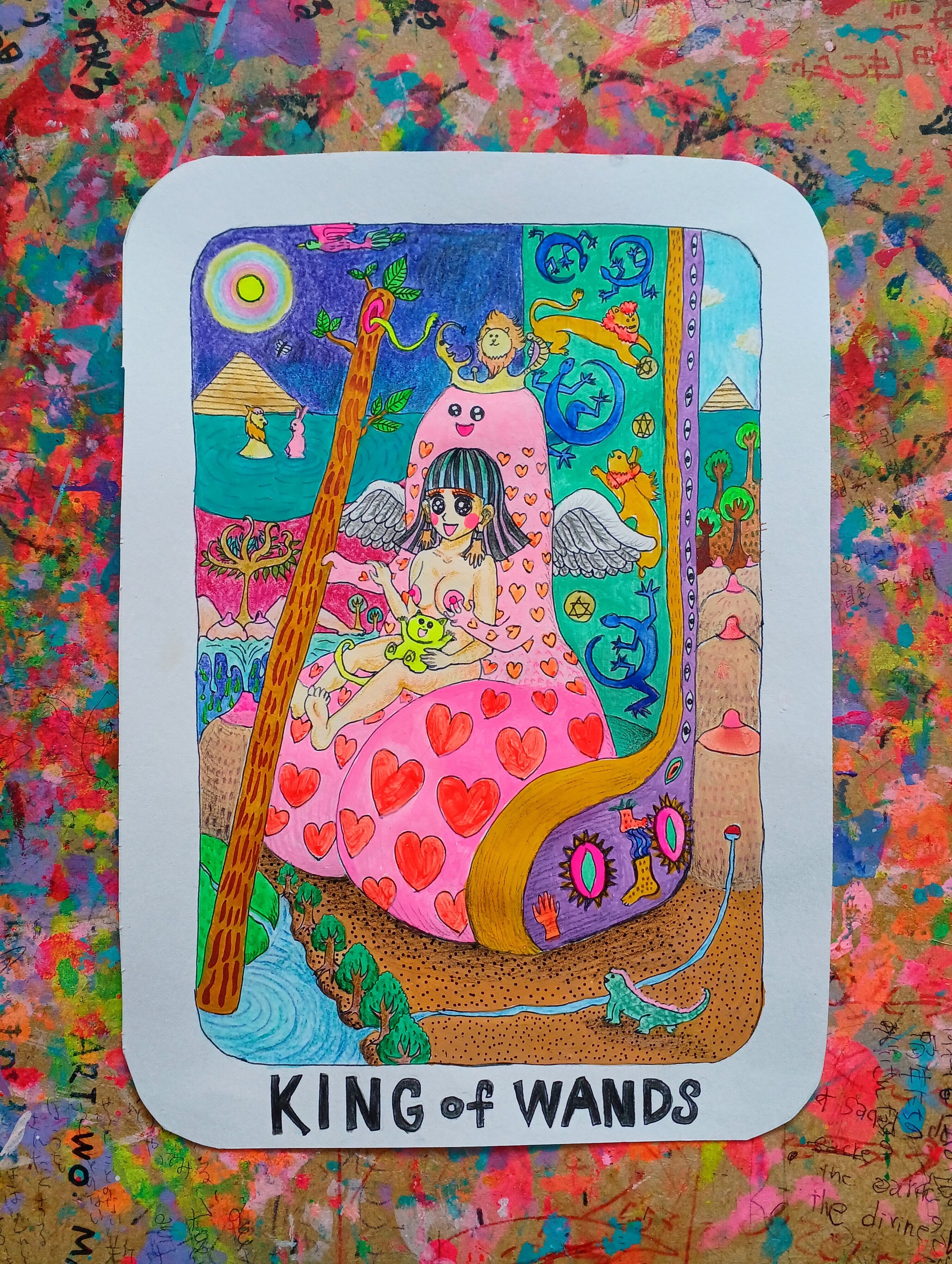 There is a signature on the surface of painting.The painting will be framed and then shipped.This is the original artwork for "FUCKING TAROT," an original tarot card created by NORIKO MIYAKE.