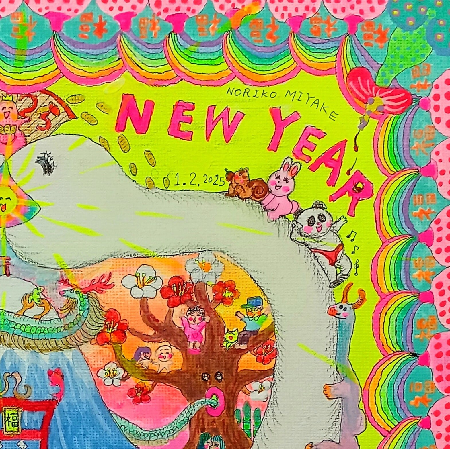 アクリル、ボールペン、キャンバス